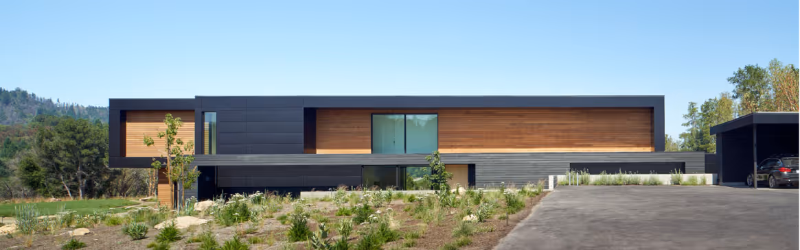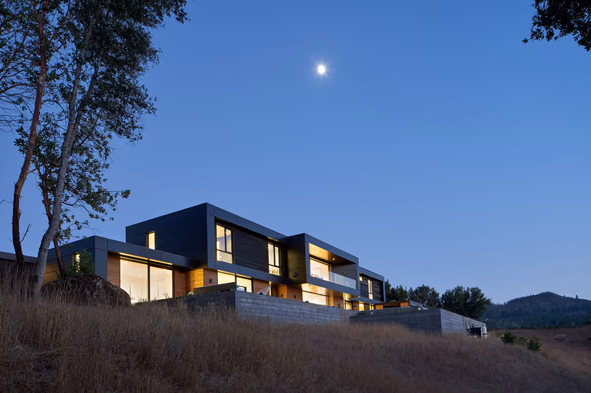 The Calistoga Custom is a custom construction built in the stunning hillside of Calistoga, California. This modern residence is defined by its striking horizontal lines, eclectic interior style, and expansive glass walls framing the breathtaking views of its surroundings. This home consists of 11 prefabricated modules with a large site-built great room that flows into the backyard pool and outdoor kitchen. Though it is just a 10 minute drive from downtownCalistoga, this residence maintains a removed and private feel, perfect for a weekend getaway.