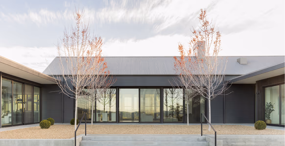 The Chimney Rock Project is a modern farmhouse tucked away in the heart of Napa. Nestled between valley oaks and vineyards and overlooking the Macaymans mountains, this home was designed to embrace the beauty of the surrounding landscape. Nick Noyes Architecture designed this home as a communal space for several generations of family, with an emphasis on authentic materials and a sustainable approach to design and construction. The construction process for this project was a hybrid of six modular units blended with the site built vaulted dining and living area completed by Del Mar Restoration. Thanks to this hybrid approach, this project was able to be completed in just one year, from start to finish. We’re proud to share that the Chimney Rock Estate was recognized in the 2025 Residential Design Awards.
